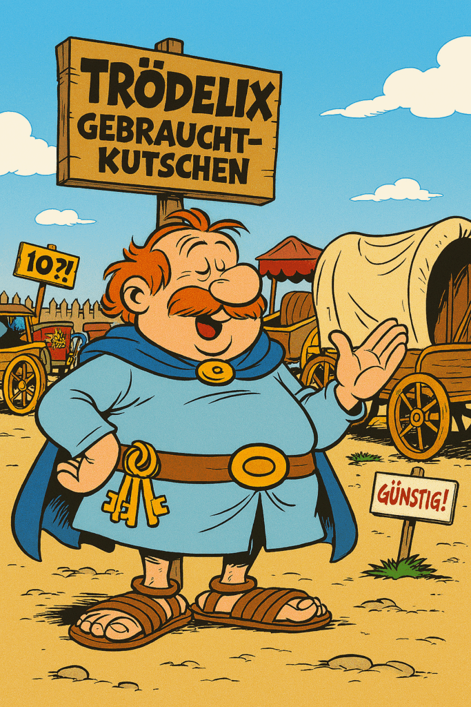 • „Natürlich gibt es Trödelix, der war im dritten Band von Asterix der Gebrauchtkutschenhändler“